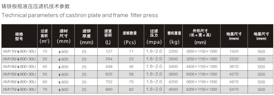 配置輔助功能壓濾機系列